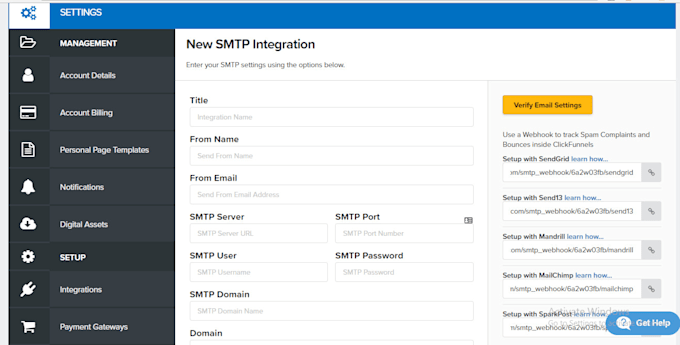 I will setup your SMTP integration in clickfunnels